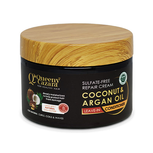 Queeny Cazara Argan & Coconut Leave-In Conditioner is the perfect solution for deep hydration and frizz control. Infused with the nourishing powers of Coconut oil and Argan oil, this leave-in conditioner works to strengthen and protect hair from breakage while adding a natural, healthy shine.